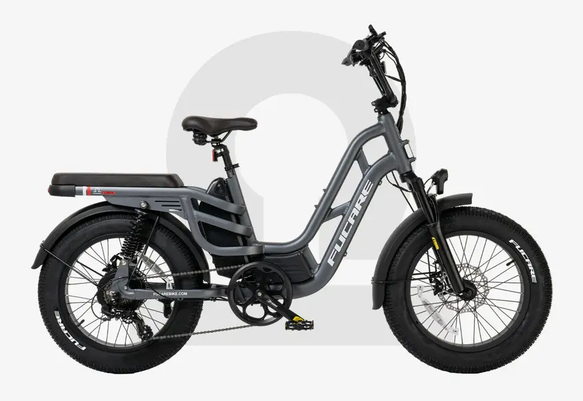 The Fucare Libra is a distinctive-looking motorcycle-style e-bike with impressive specifications and a budget-friendly price. Its design echoes that of the Rad Power Bikes’ RadRunner 2, featuring a standard bike saddle, a passenger rear rack, and a step-through frame. Still, it retains the motorcycle feel with its robust wheels and suspension.